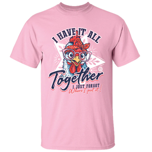 Make our GGO-2793 Together Chicken short sleeve tee your go-to for effortless style and honest humor. Constructed from 100% breathable cotton, it boldly proclaims "I have it all together, I just forgot where I put it." This fun tee pairs perfectly with any outfit while delivering a touch of southern sass. Comfortable enough for all-day wear and witty enough to spark conversations. Don't settle for ordinary, choose a tee that gets you.