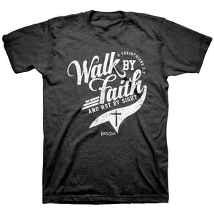 Walk the walk in this “Walk by Faith” T-Shirt in Black Heather by Kerusso®. The old-school appeal of the retro-style design on a deep black/gray is top of the class. The poly-cotton blend is designed for softness, and reinforced stitching will keep this quality shirt in great shape wash after wash. This might just be your new favorite T-shirt.