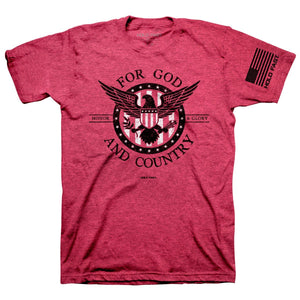 Stand up for your beliefs in this patriotic “For God And Country” T-Shirt by HOLD FAST™ in Red Heather. Let the world know what you stand for: you live to honor God, and you are a proud citizen of the United States of America. Remember our nation, the heroes who protect and serve our interests around the world, and all Americans in your prayers. God has blessed this great nation, and we have much to be grateful for.