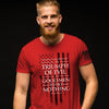 Set out to conquer evil in the name of Jesus in this “Burke” T-Shirt by Hold Fast™ in Red. A faded image of the flag of the United States of America is the backdrop for this powerful message-based Tee — a reminder that in order to protect the blessings we enjoy as Americans, we must be prepared to pray, obey, and act.