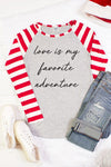 Love is My Favorite Adventure Valentines Day Striped Raglan Long Sleeve Shirt