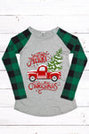 Merry Christmas Truck Buffalo Plaid Sleeve Raglan Long Sleeve T-Shirt