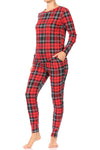 Red Plaid Fleece Lined Lounge Pajama Set Pants and Shirt