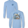 Oh Come Let Us Adore Him with our sweet manger scene printed on Gildan long sleeve light blue. Sizes S-3X.