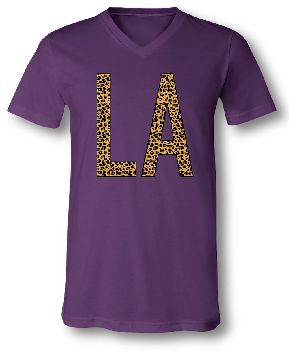 Sassy Frass Louisiana State LA Leopard V-Neck Canvas Girlie Bright T Shirt