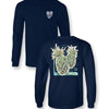 This design is one of our best sellers for Summer and requested for year round so here it is on long sleeve on Gildan navy.  The pineapples are in metallic gold glitter ink for a little extra sparkle. Available in sizes S-3X.