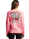 Nuggets, Waffles Fries and Sweet Tea are proof God loves us and wants us to be happy. Printed on light pink tee. The design is printed on back of tee and logo is printed on left front chest area. Sizes S-3X.