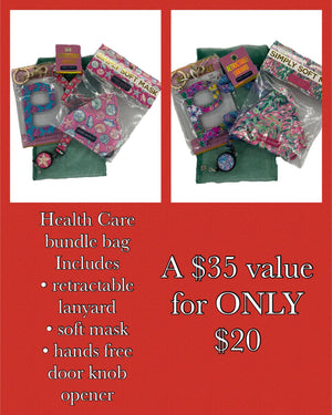 The Simply Cute Tees Healthcare Bundle Bundle Gift Bag has everything you need for a safe and stylish healthcare experience! This bundle includes a retractable lanyard from Simply Southern, a soft mask for all-day comfort, and a hands-free door opener to minimize contact with germs. Stay safe and cute with this bundle!