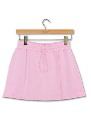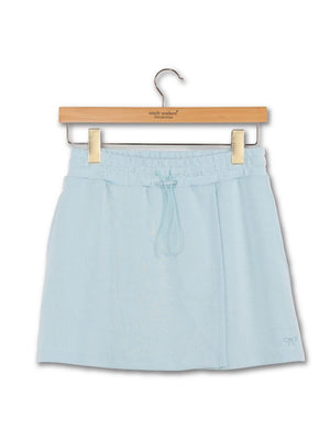 The Lounge Wrap Skirt features an elasticated waistband with adjustable cinch detail, a wrap design, interior shorts, and side seam pockets with Simply Southern logo embroidery. Made of 48% modal, 48% polyester, and 4% spandex. Size medium length is 16".
