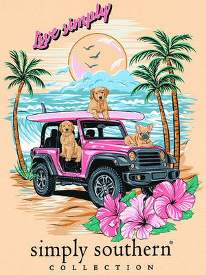 Get ready to hit the beach with this playful Simply Southern Beach Dogs Sun T-Shirt! Made with high-quality materials, this shirt features an adorable design of dogs basking in the sun. Show off your fun-loving and laid-back style while staying comfortable all day long. Perfect for a casual day out or a beach vacation.