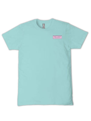 Made from 100% soft, breathable cotton, this short sleeve basic tee delivers all-day comfort in a clean, classic cut. This aqua blue tee features a stack of books topped with a pink bow and the phrases 'Chase Dreams and Read Stories' and 'Books and Bows Social Club'.