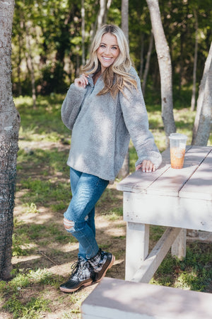 Simply Southern Classic Grey Sherpa Long Sleeve Sweatshirt