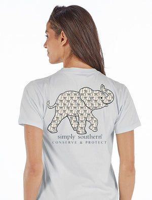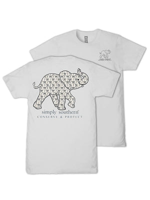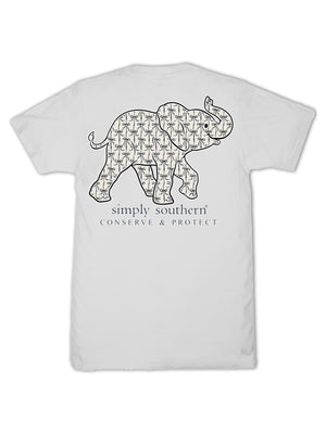 Made from 100% soft, breathable cotton, this short sleeve basic tee delivers all-day comfort in a clean, classic cut. This star grey tee features an elephant silhouette filled with a bow pattern and is part of our animal tracking program.