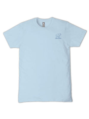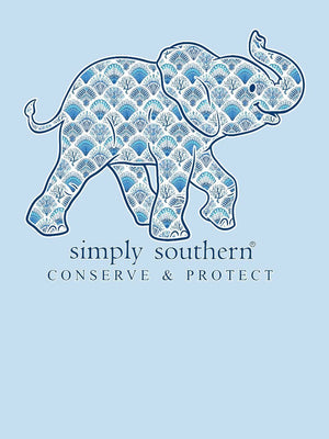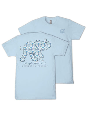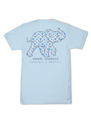 Made from 100% soft, breathable cotton, this short sleeve basic tee delivers all-day comfort in a clean, classic cut. This ice blue tee features an elephant silhouette filled with a blue seashell pattern and is part of our animal tracking program.