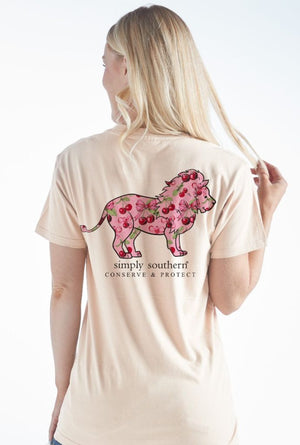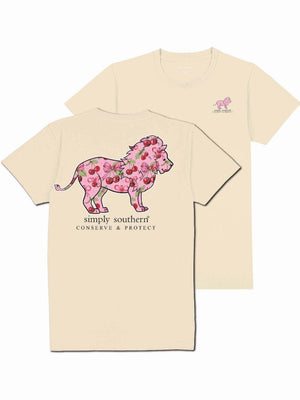 Keep track of your wild adventures in style with the Simply Southern Lion Tracker Cherry Natural T-Shirt. Crafted with soft and breathable material, this t-shirt boasts a fierce lion graphic and a playful cherry twist. Perfect for any outdoor enthusiast, this shirt will have you roaring with delight. (No lions were harmed in the making of this shirt.)