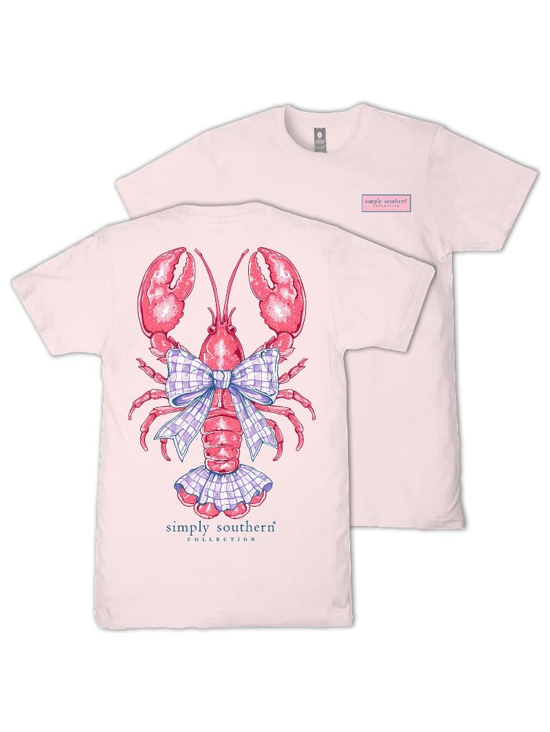 Made from 100% soft, breathable cotton, this short sleeve basic tee delivers all-day comfort in a clean, classic cut. This rosy pink tee features a lobster sporting a purple bow and skirt.