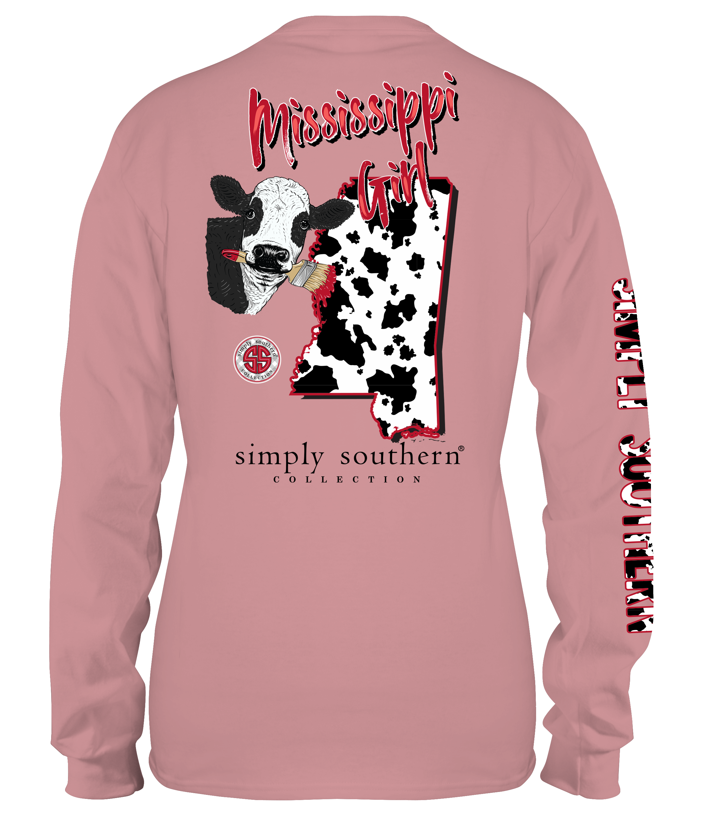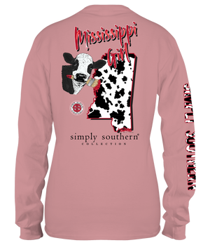 Simply Southern Mississippi Girl Cow Print Long Sleeve T-Shirt