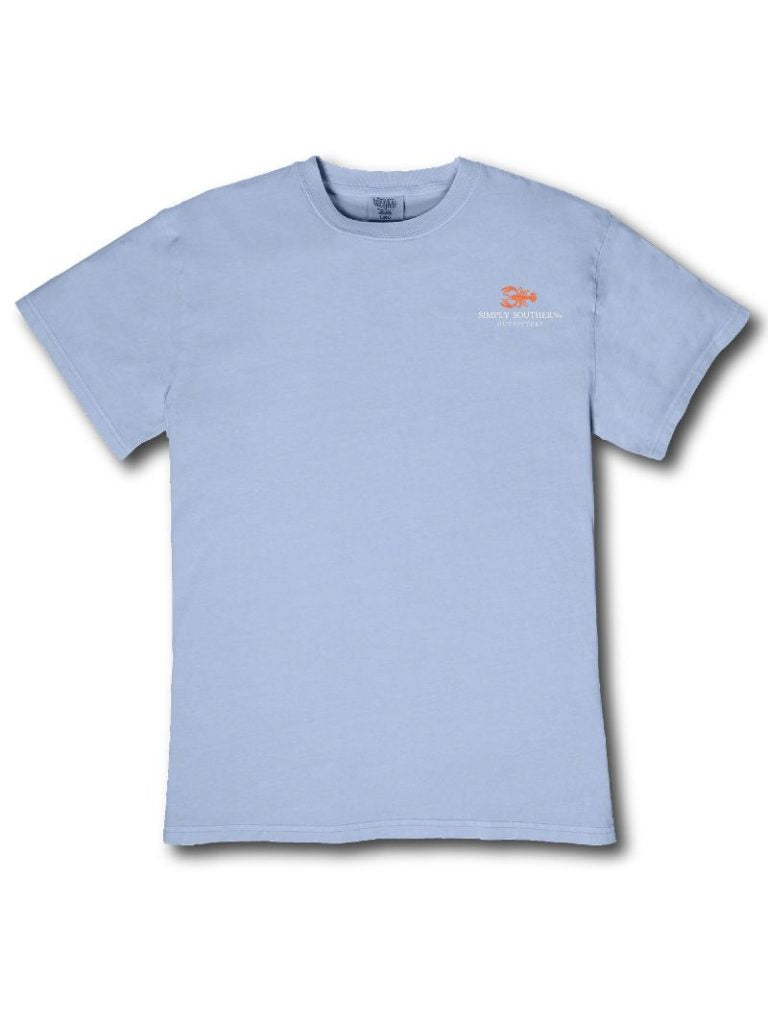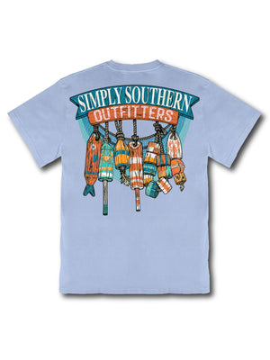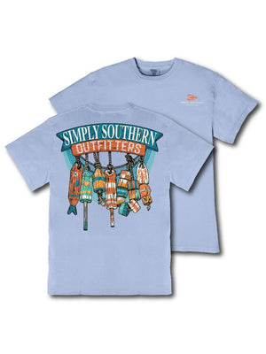 Made from 100% heavyweight cotton, this short sleeve mineral washed tee delivers structure and comfort. This faded blue tee features the Simply Southern logo above a string of wooden buoys.