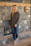 SALE Simply Southern Preppy Henley Dark Grey Long Sleeve T-Shirt