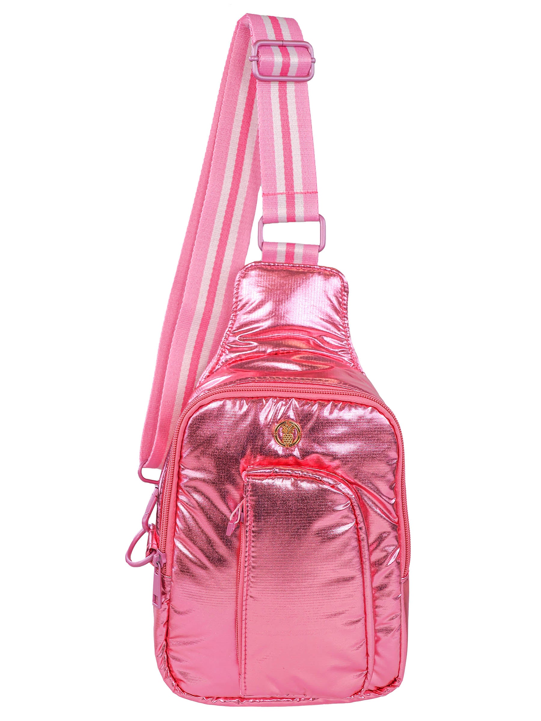 Sling into style with the Simply Southern Preppy Metallic Sling Bag! Available in chic white or playful pink, this bag is perfect for any fashion-forward individual. Show off your unique style with a touch of metallic and preppy charm. (Bag only, accessories not included.)
