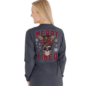 Simply Southern Preppy Merry & Tired Holiday Long Sleeve T-Shirt