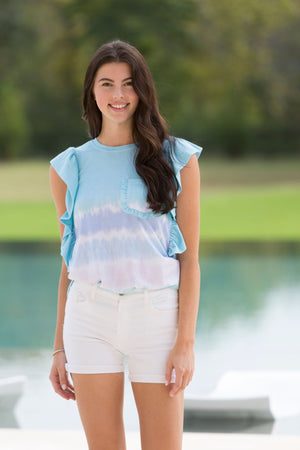 Simply Southern Ruffle Tie Dye Blue T-Shirt