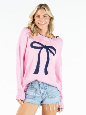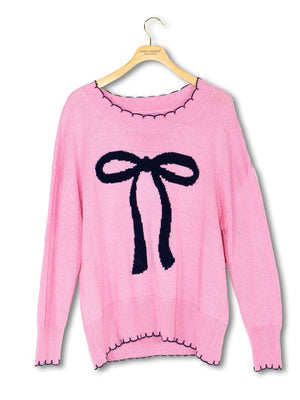 Simply Southern Sweet Bow Long Sleeve Sweater Cozy up in this charming long-sleeve sweater featuring an adorable bow detail that brings instant personality to your everyday look. Crafted for comfort and style, it's the perfect layering piece for chilly days when you want to feel put-together without trying too hard. Whether you're grabbing coffee or heading out for a casual hangout, this sweater pairs effortlessly with your favorite jeans or skirts. A wardrobe staple that proves sweetness never goes out of style.