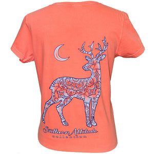 Southern Attitude Preppy Mandala Deer Moon Fitted Ladies T-Shirt