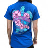 Southern Attitude Snappy Sea Turtle Flower Blue T-Shirt