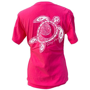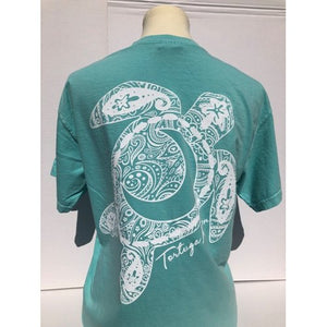 Picture is of the back of the shirt, Front of the shirt has Tortuga Moon logo