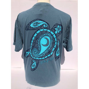 Picture is of the back of the shirt, Front of the shirt has Tortuga Moon logo