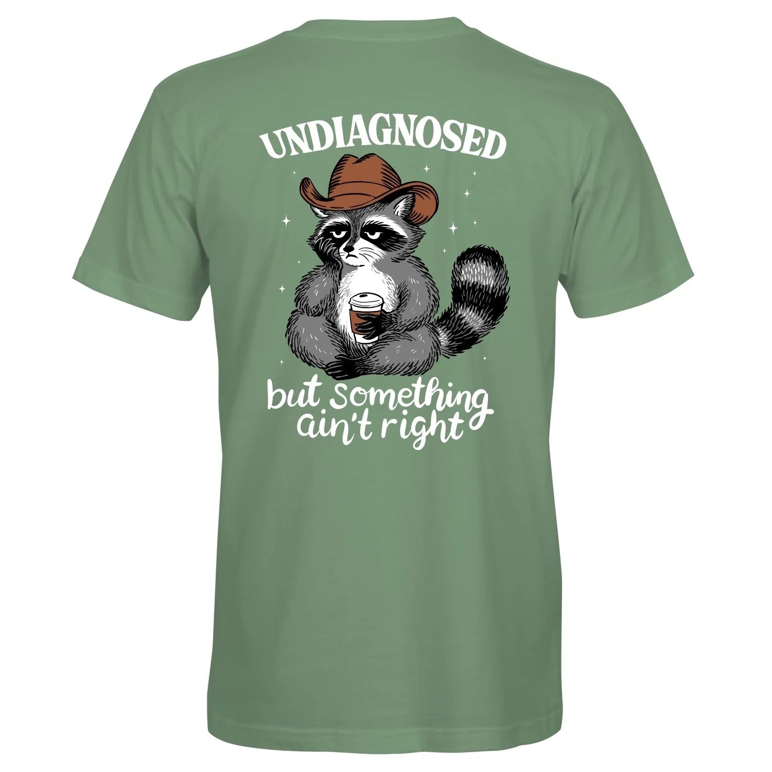 # Southern Attitude Undiagnosed Raccoon T-Shirt This hilarious tee speaks to the chaos lover in all of us with its tongue-in-cheek "Undiagnosed" message paired with an expressive raccoon graphic. Perfect for anyone who embraces their quirky, unpredictable nature, it's a lighthearted nod to living life on your own terms. Soft and comfortable for everyday wear, this playful design lets your personality shine without saying a word. A fun addition to any casual wardrobe that celebrates the beautifully messy side of being authentically you.