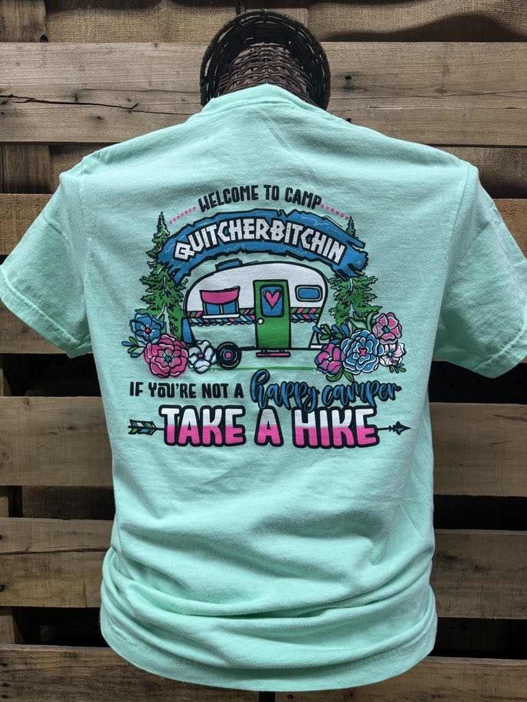 Embrace your inner happy camper with the Southern Chics WELCOME TO CAMP QUITCHERBITCHIN T Shirt. Made from Comfort Colors fabric, this tee is perfect for hiking and camping adventures. Don't be a buzzkill, grab your shirt and take a hike!