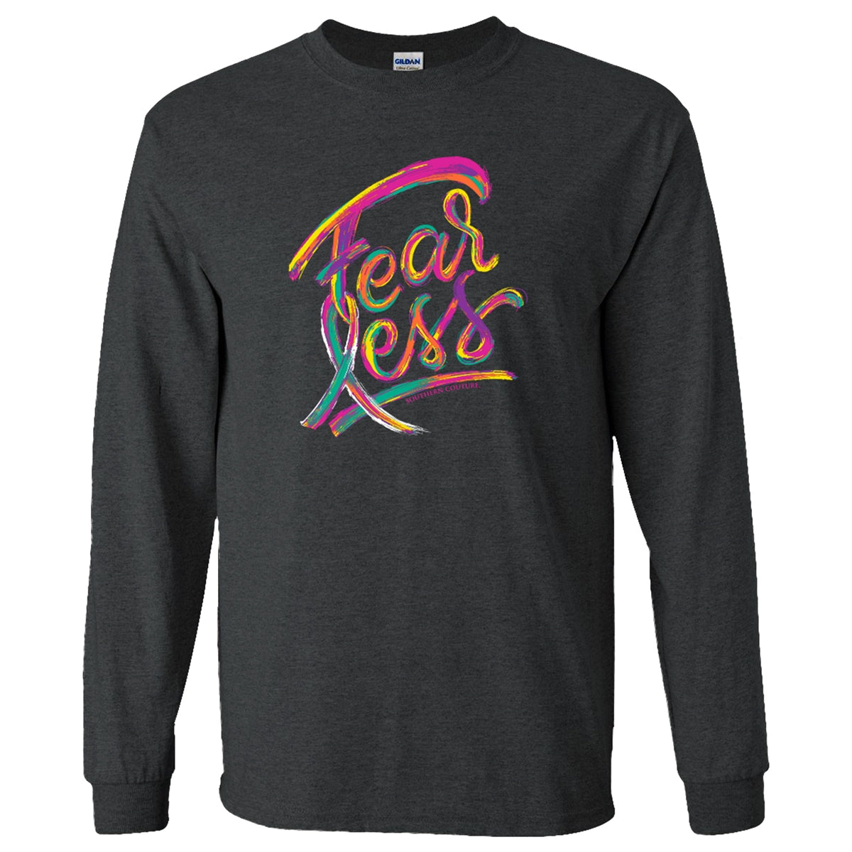 Stay comfortable and fearless in our Southern Couture Soft Fearless Ribbon Cancer Long Sleeve T-Shirt. Made with soft and breathable fabric, this shirt features a beautiful ribbon design to show your support for those battling cancer. A portion of the proceeds goes towards cancer research.