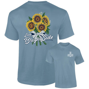 When life gives you sunflowers, make it a bouquet! Our Southernology® Bright Side Bouquet tee features a cheerful cluster of bright sunflowers paired with a hopeful message to remind you that every day holds a little sunshine. Printed on a Comfort Color ice blue short sleeve tee.