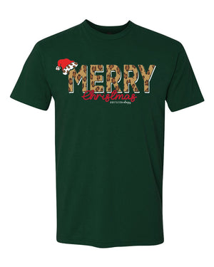 Sleigh the season in style with our Southernology® Leopard Merry Christmas tee! This festive favorite puts a wild twist on a classic holiday message with bold leopard print lettering that pops with personality. Printed on a Next Level forest green short sleeve tee.