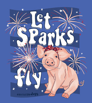 Let sparks fly this 4th of July! This NEW Southernology® design is printed on a Flo blue comfort color t-shirt.