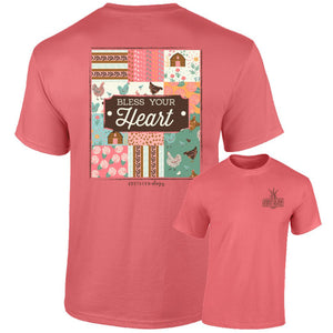 Classic Southern charm meets cozy vintage vibes in our Southernology® Patchwork Bless Your Heart tee. Featuring a beautifully stitched-look design with a quilt-inspired patchwork print. Printed on a Comfort Color watermelon short sleeve tee. Also availabe in long sleeve.