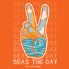 This NEW Southernology® tee is a reminder to "Seas the Day" This design features coastal waves & sunshine within a hand sign for peace. Printed on a melon Comfort Color tee.