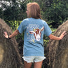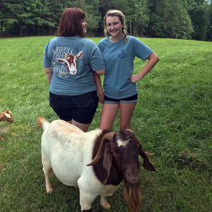Southernology® Worry The Horns off a Billy Goat reminds us that sometimes worrying is good for nothin'! It is a exclusive hand-drawn design with an adorable billy goat chewing on flowers. This design is printed on a short sleeve Ice Blue Comfort Colors t-shirt